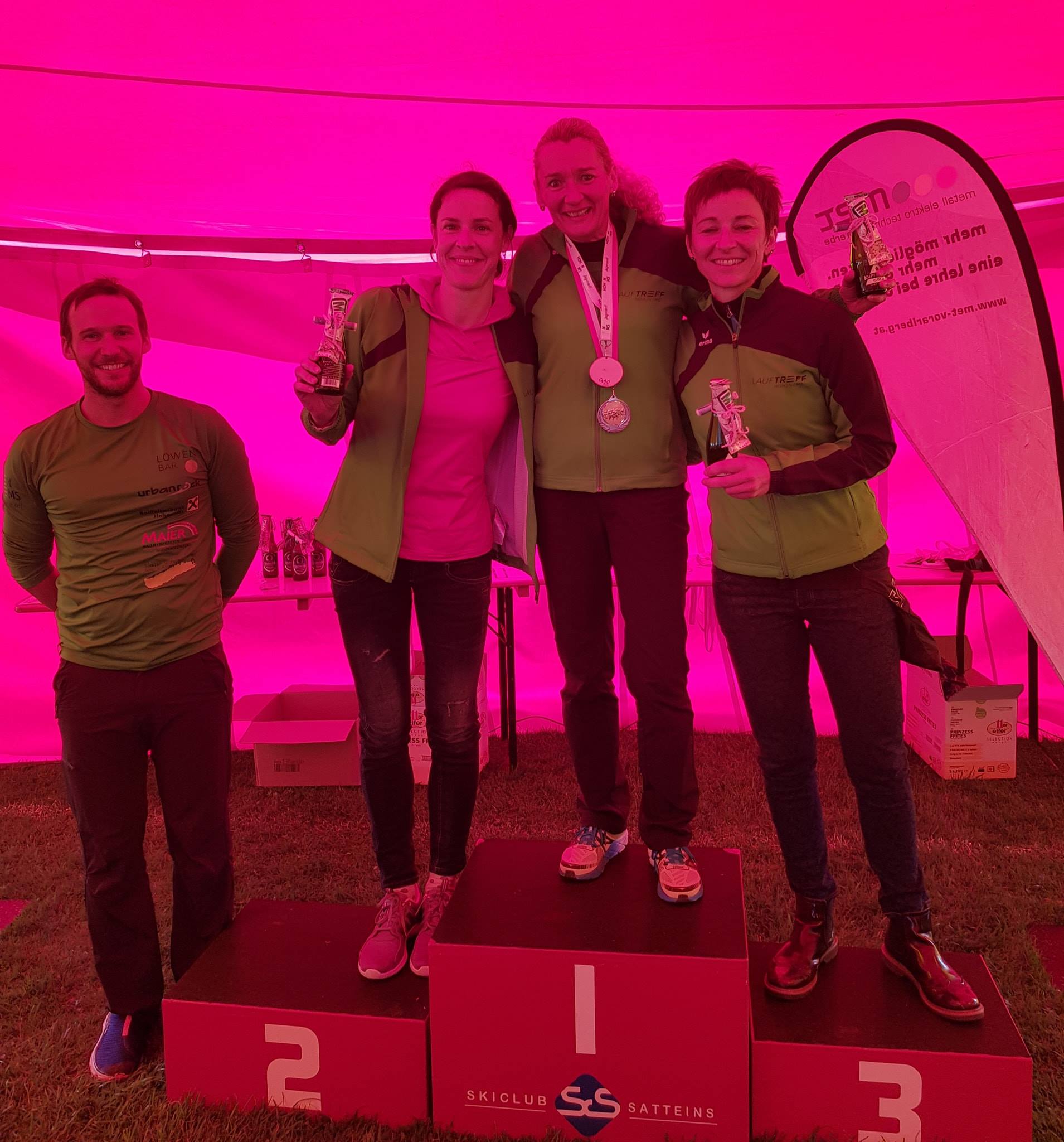 Aber auch beim eigentlichen Lauf stürmten die Lauftreff Mitglieder die Podestplätze. Drei erste Plätze in den Altersklassen für Kathi Schichtl, Werner Charec und Johannes Rüdisser. Jeweils einen zweiten Platz in der Altersklasse für Andreas Sohm, Karin Plachy, Jürgen Schnetzer und Norbert Amann. Sowie jeweils einen dritten Platz für Sabrina Schaal, Mathias Galler, Simone Grafschafter und Bernhard Serbinek. Darüber hinaus holte sich Kathi Schichtl den Gesamtsieg bei den Frauen.