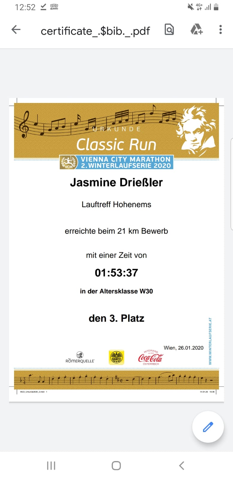 Jasmine Driessler hat am Wochenende bei der 2. Winterlaufserie in Wien den dritten Platz in der Altersklasse reicht beim Halbmarathon in einer wahnsinnigen Zeit von 1:53:37 Std.!! Wir gratulieren recht herzlich, eine super Vorbereitung für den offiziellen Halbmarathon im April....Weiter so 🏃🏼♀️💪💥
