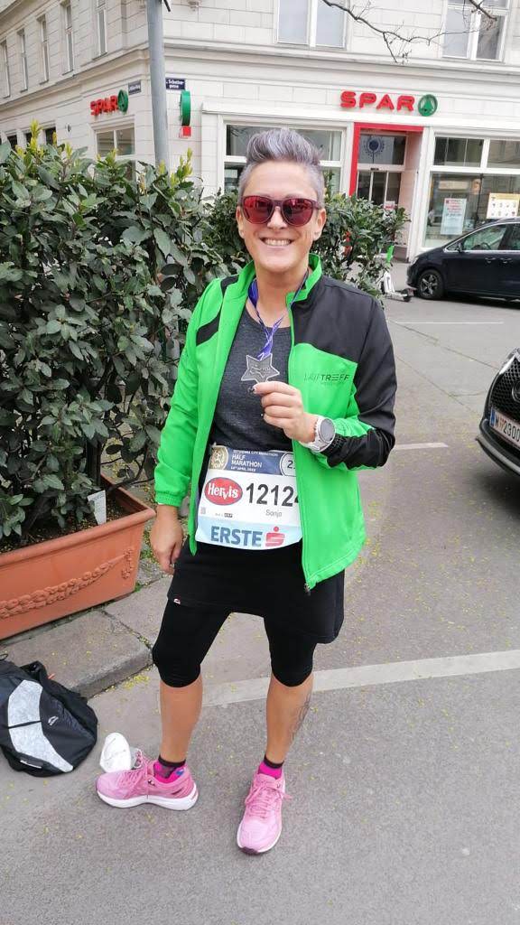 In unserer Hauptstadt Wien begann der Start des Vienna City Marathon bereits zwei Stunden früher. Unter den 12.000 Läufer:innen des VCM-Halbmarathons hat Sonja den Lauftreff Hohenems vertreten und ist mit einer Zielzeit von 02:49:02 Std. ins Ziel gekommen und freut sich sichtlich über Ihre Medaille.