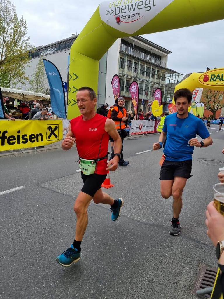Dabei sind einige flotte Kilometer zusammengekommen. In Bludenz fiel um 11:00 Uhr der Startschuss bei der alljährlich beliebten Veranstaltung „Bludenz läuft“. Hier ging der Lauftreff Hohenems mit insgesamt sechs Teilnehmer:innen an den Start. Bei optimalen Laufbedingungen liefen Alexander und Christine beim Raiffeisen Fun Run eine Runde mit 7 km und kamen fast zeitgleich ins Ziel an. Nathalie, Reinhard und Stefan legten bei dem BERTSCH City Run jeweils 14 km zurück und Bernhard absolvierte den Fohrenburger Halbmarathon in einer rasanten Zeit von 1:40:10 Std.. Respekt vor den Leistungen!