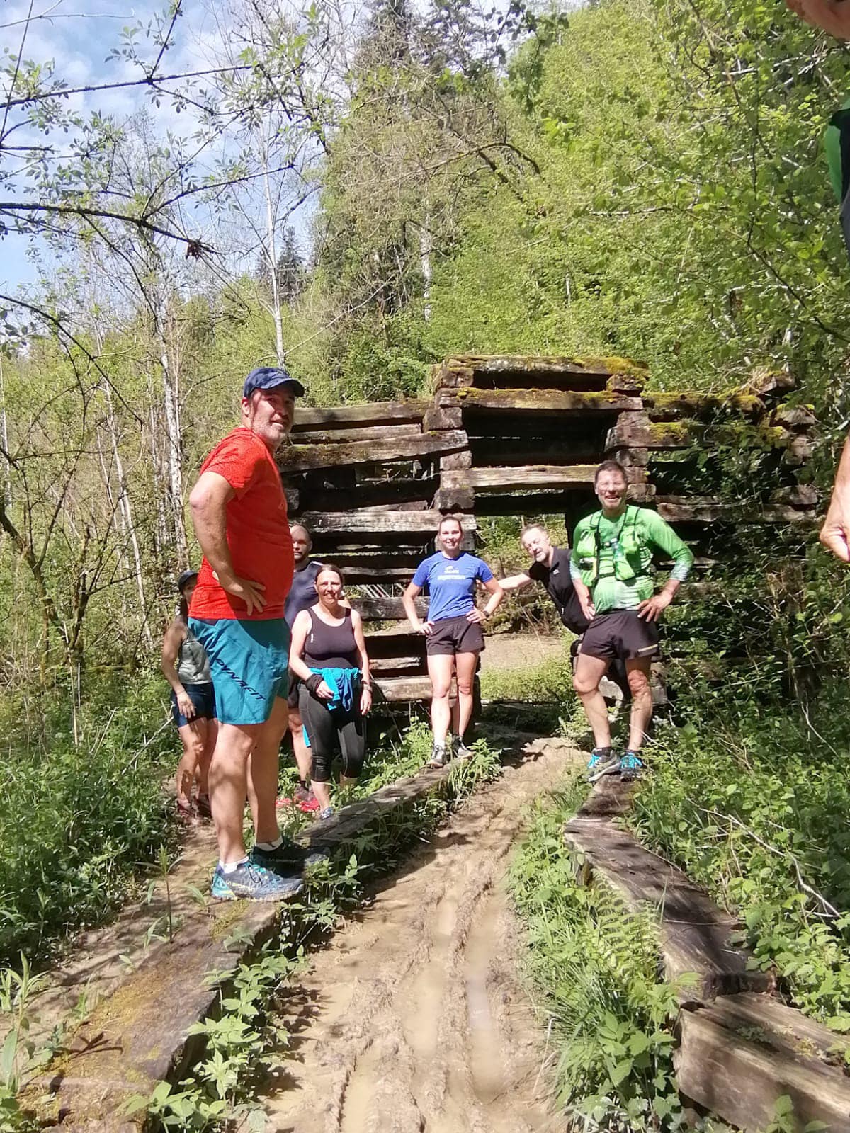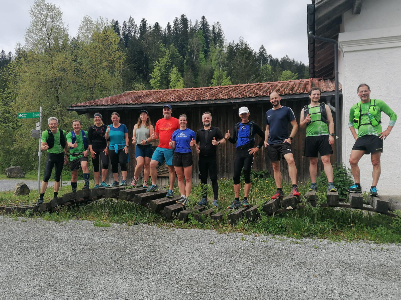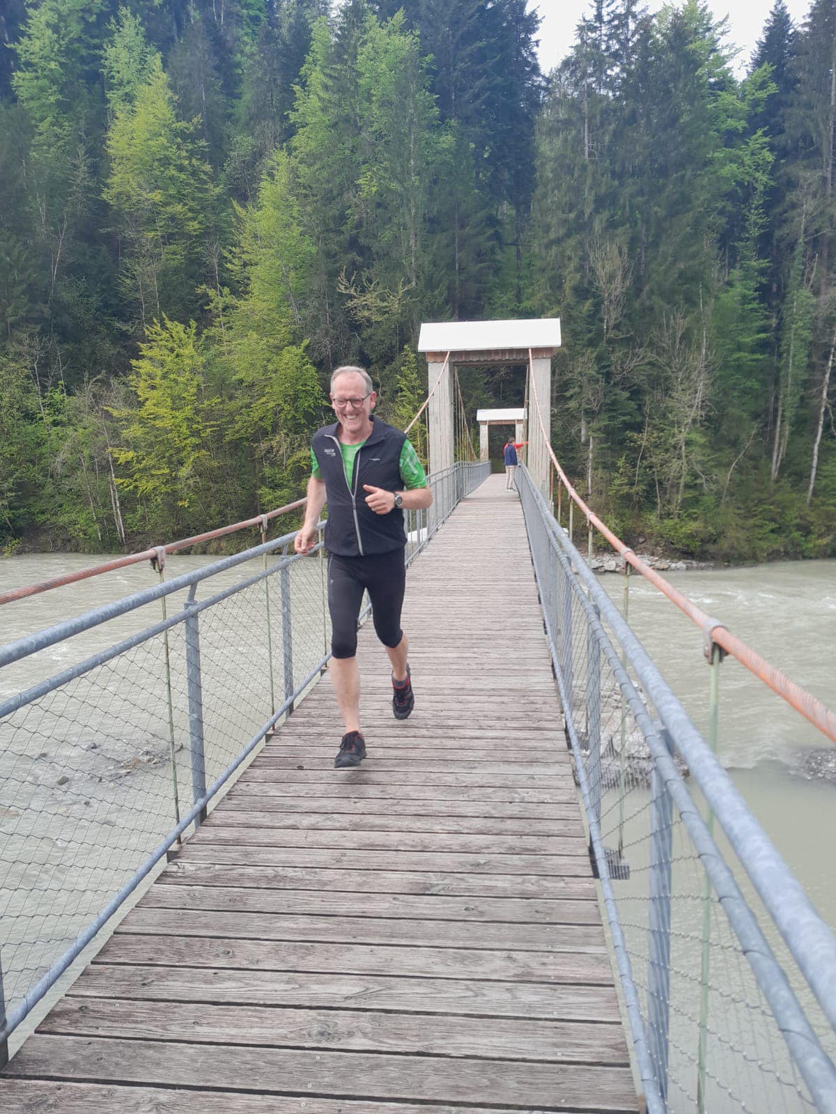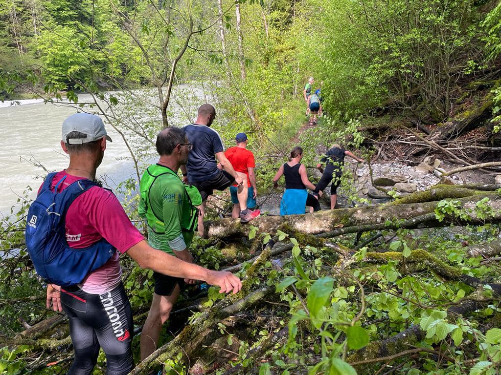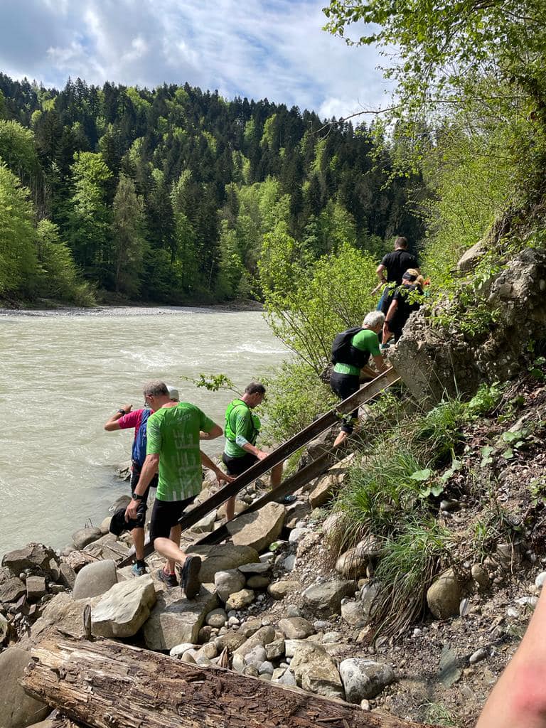 Am Samstag den 7.6. fand wieder der allmonatliche Samstagslauf statt. Diesmal fuhren wir mit dem Bus nach Alberschwende. Von dort aus gab es erst ein lockeres Einlaufen auf der Ebene, bevor wir steil hinab und über die Hängebrücke nach Bozenau liefen.