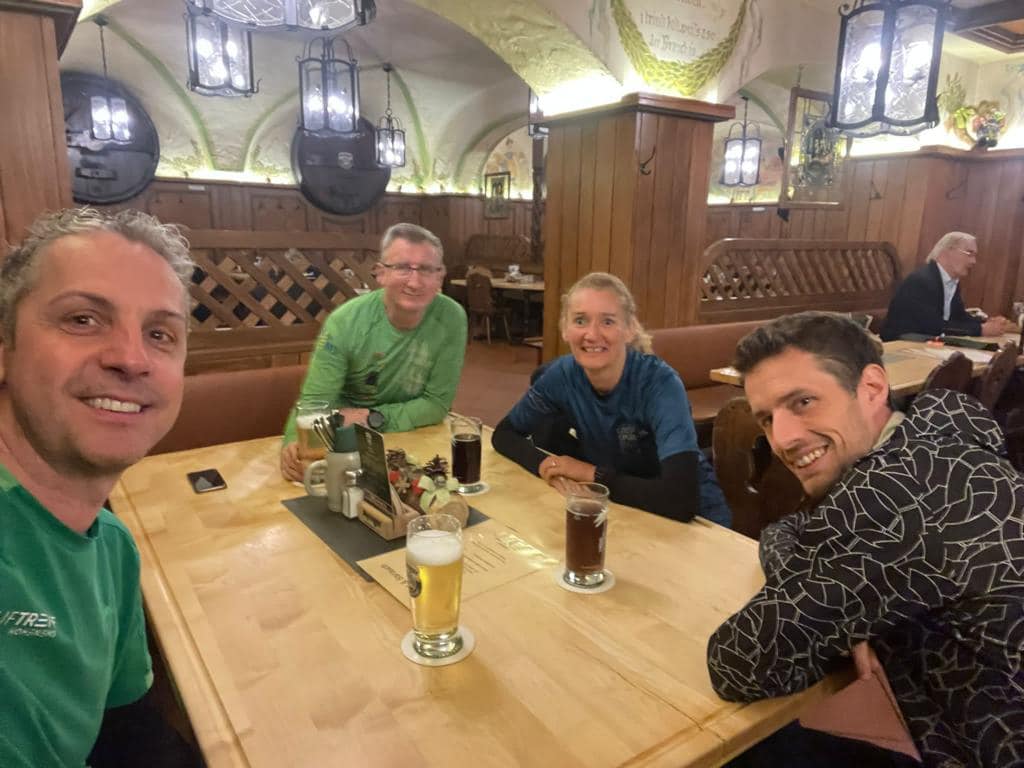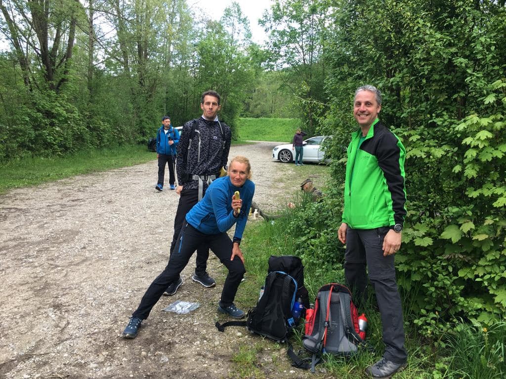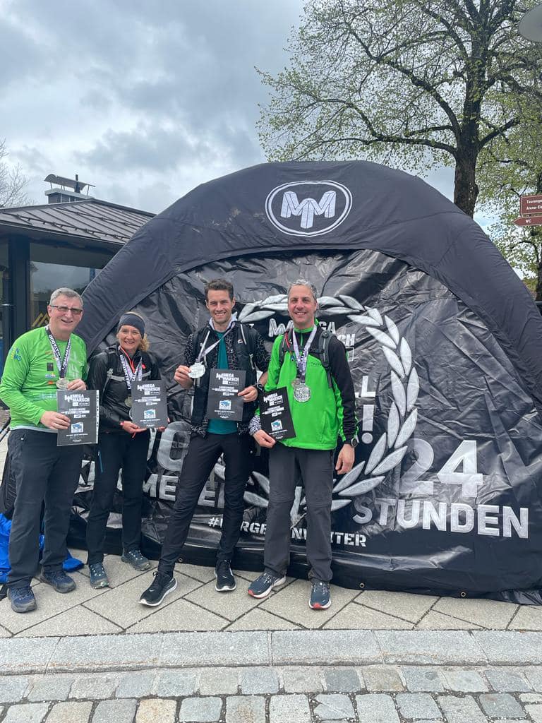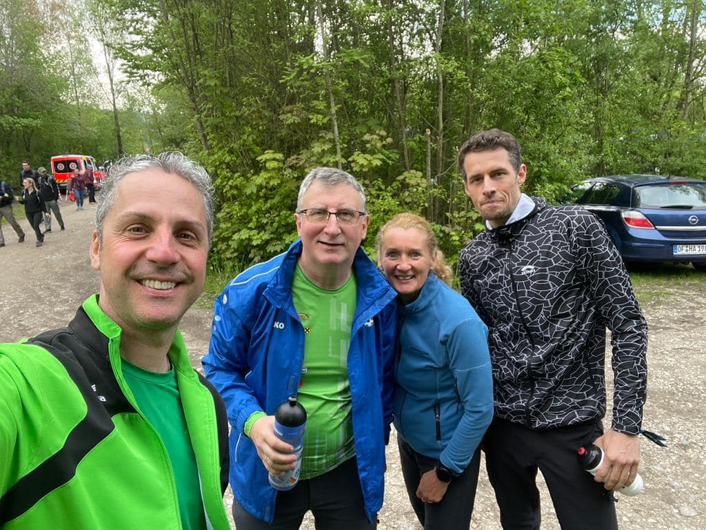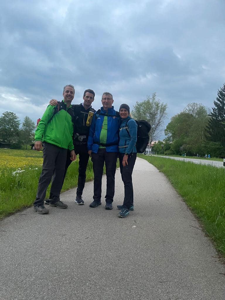 Unsere 3 Lauftreff-Mitglieder Karin, Klaus und Thomas sowie Laufkollege Felix haben sich auch heuer wieder der 100 km-Mega Marsch-Challenge gestellt und sind von München nach Mittenwald an der österr. Grenze gewandert.