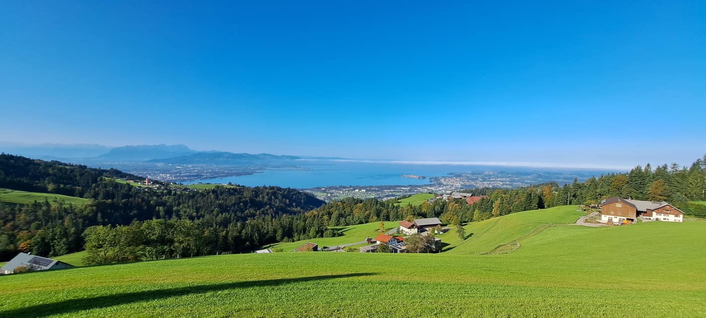 Über abwechslungsreiche Forst- und Wald- und Wiesenwege liefen wir abwärts in Richtung Möggers und bei toller Aussicht auf den See wieder zurück zum Ausgangspunkt.