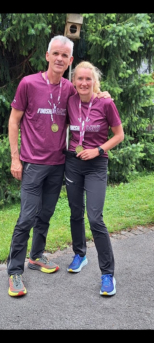 Für Karin war es bereits die 3. erfolgreiche Teilnahme in Biel und Bernhard sicherte sich bei seinem Debüt auf der 100 km Strecke mit einer hervorragenden Laufzeit von 09:51 h in der AK M55 gleich den 1. Platz.