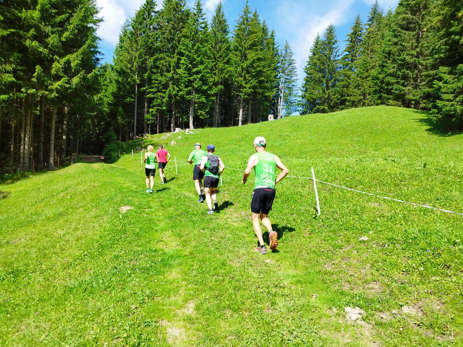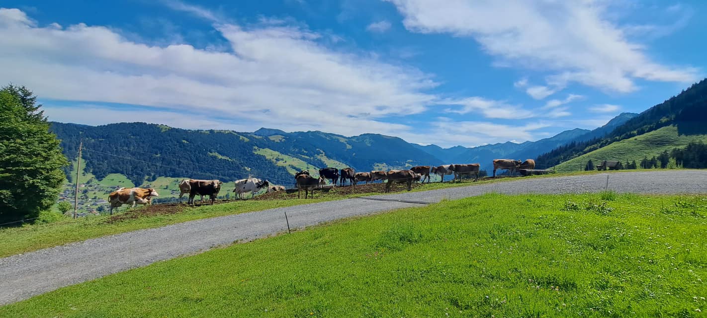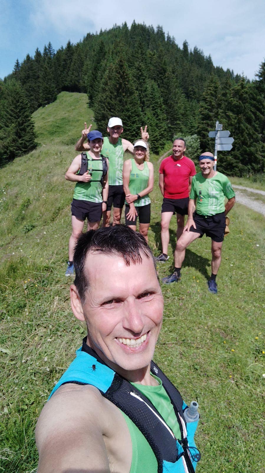 Im Juli luden uns Reini und Sabine zum Samstagslauf ein. Start und Ziel war in Übersaxen. Die Strecke verlief sehr abwechslungsreich über schmale Pfade und Forstwege und einige Kuhweiden, von denen aus sich ein wunderschöner Blick in die Berge bot. Am Wendepunkt konnten wir sogar den Piz Buin erblicken.