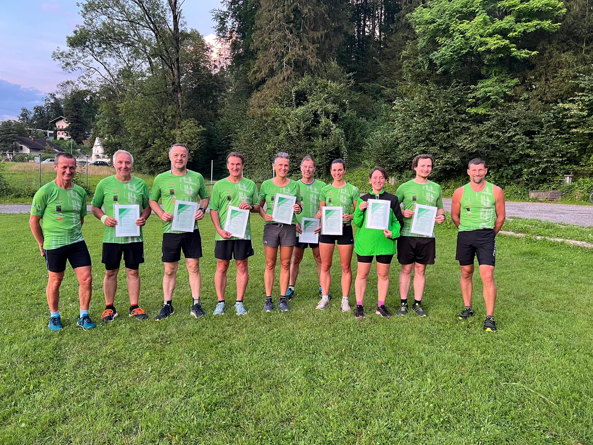 Bei der praktischen Prüfung wurden die angehenden TrainerInnen von den erfahrenen Laufgruppenleitern Bernhard, Peter und Werner in die Mangel genommen, doch am Ende konnten alle acht TeilnehmerInnen stolz ihr Zertifikat entgegennehmen.