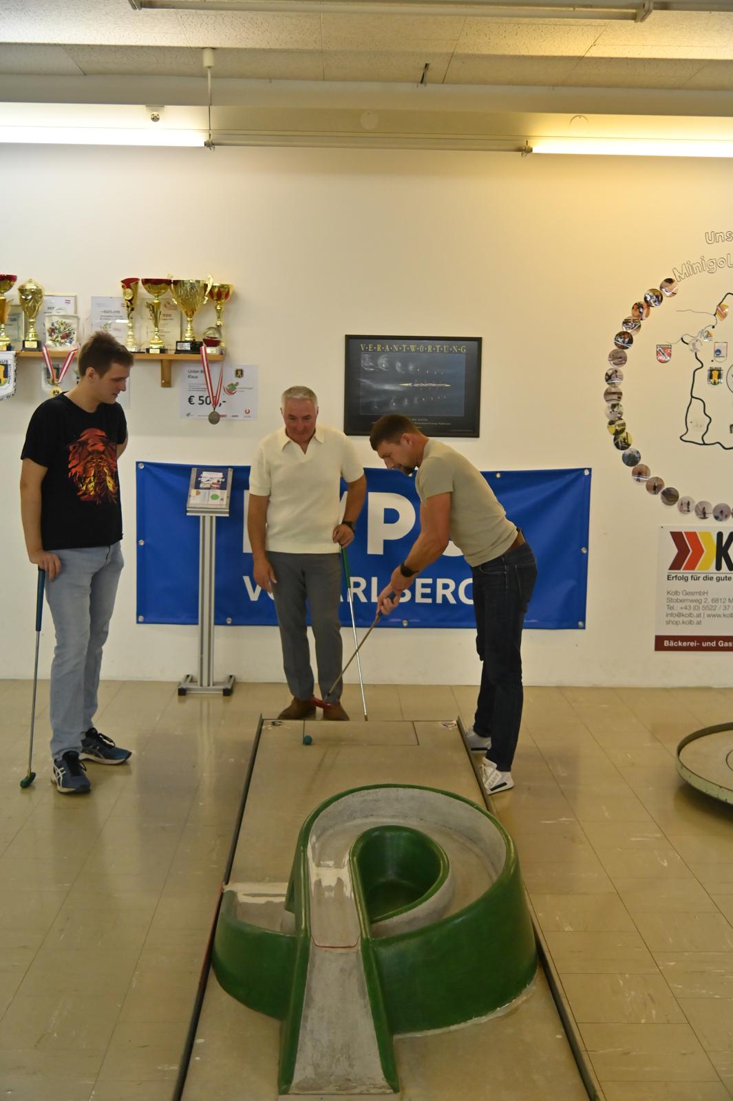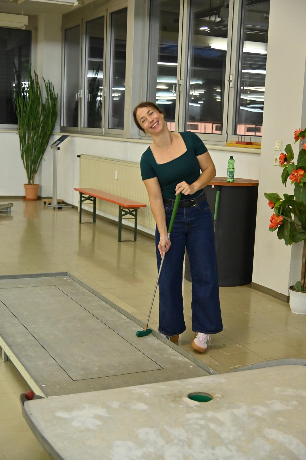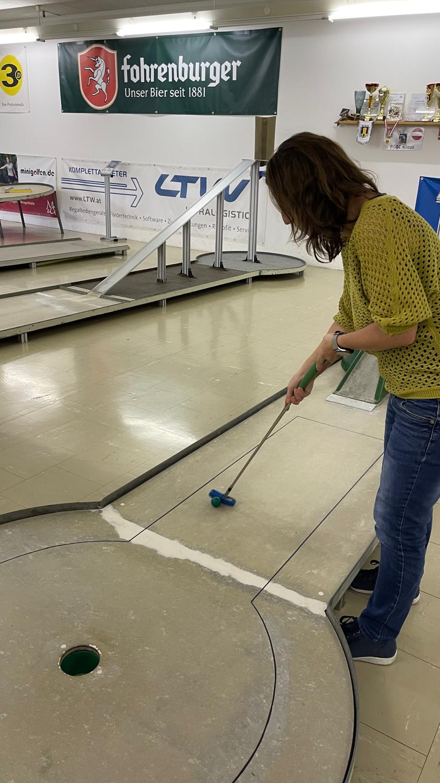 Als kleines Dankeschön für die tolle Unterstützung haben wir uns etwas Besonderes einfallen lassen: Zuerst ging es zum Indoor-Minigolf, wo mit viel Ehrgeiz, aber auch jeder Menge Spaß gespielt, gelacht und gefachsimpelt wurde. Manche Schläge landeten zielsicher im Loch, andere eher… auf kreative Weise – aber genau das machte den Abend so unterhaltsam.